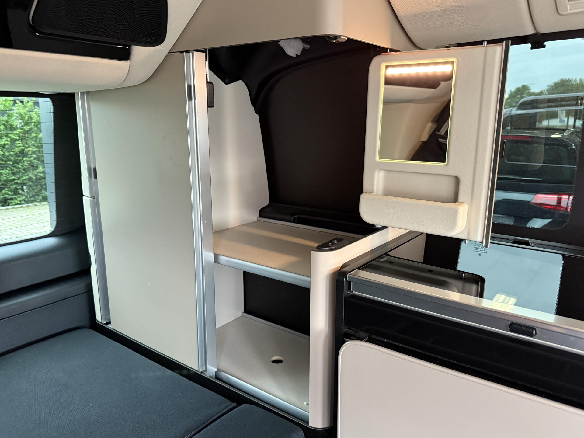 - Hout afgewerkte vloer in het campergedeelte