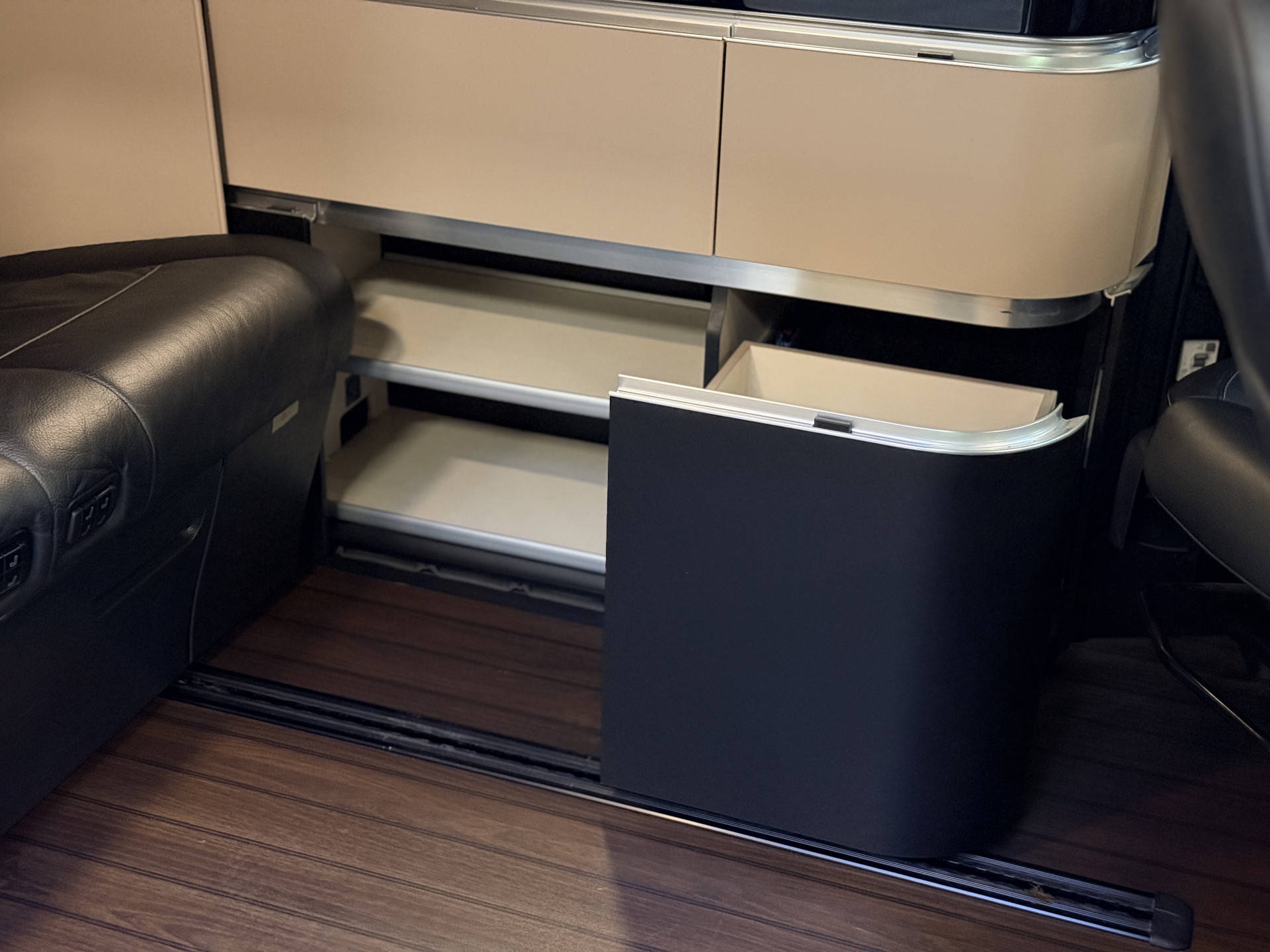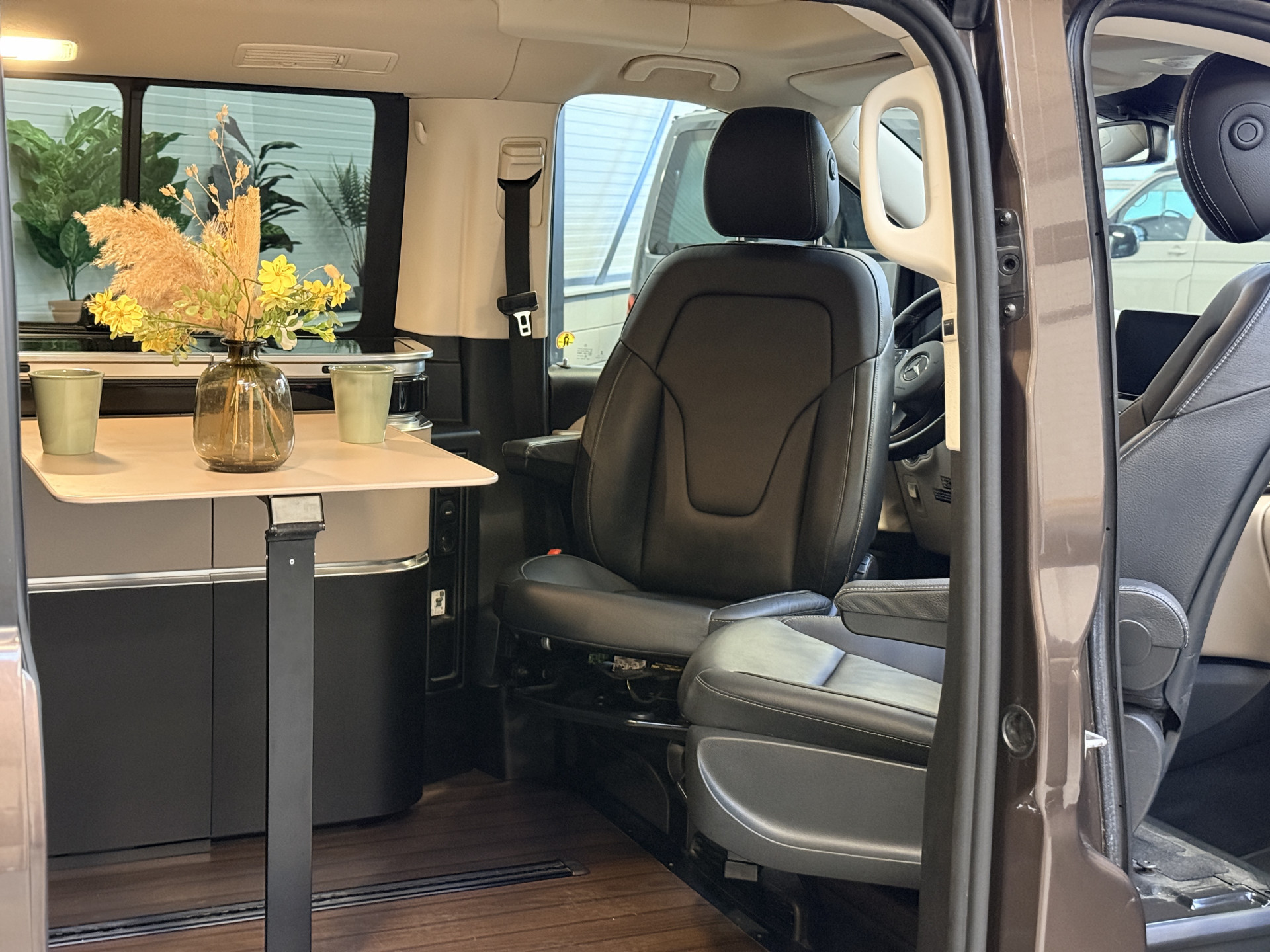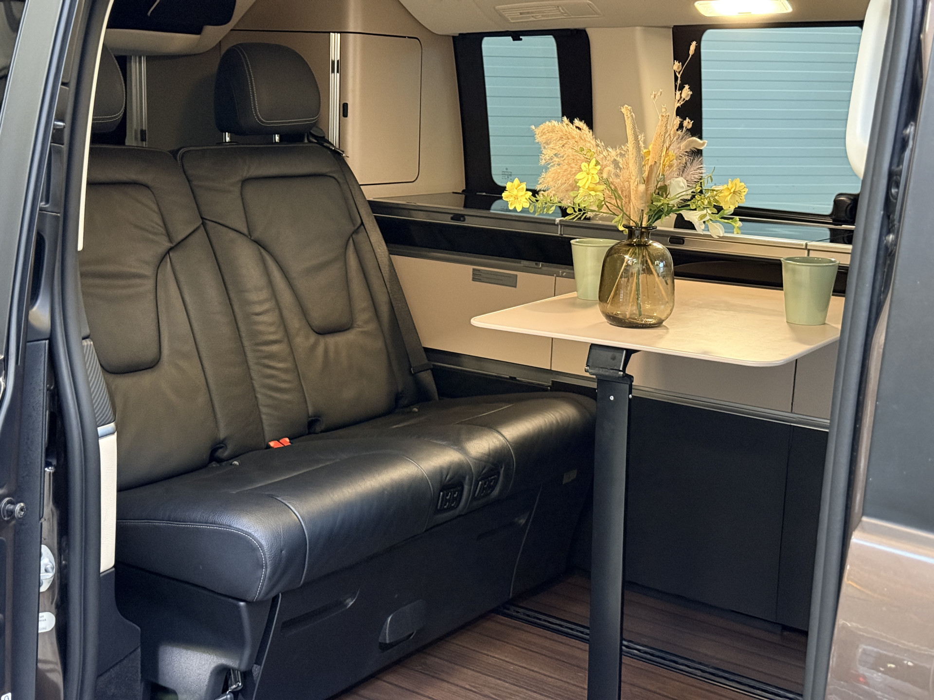 - Hout afgewerkte vloer in het campergedeelte